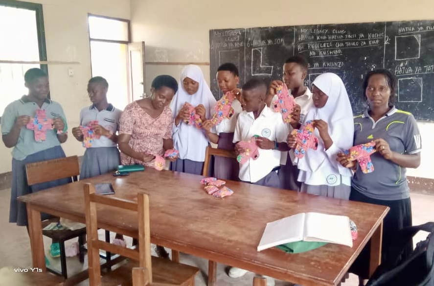 We also integrate practical skills training by teaching students and teachers how to produce reusable sanitary pads, a solution that improves product access, promotes eco-sustainability, and supports economic empowerment and community resilience.